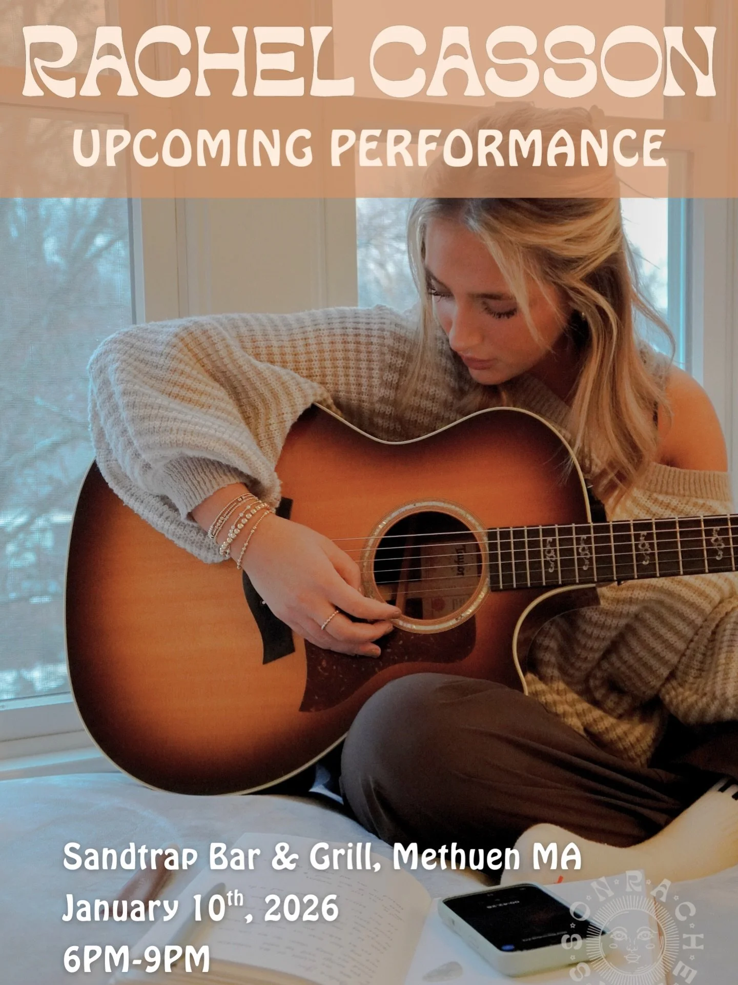 New England native Rachel Casson has been writing, singing and performing original music since the age of 13. Drawing influence from storytelling artists such as Gracie Abrams and Kacey Musgraves, she has performed in numerous venues ranging from coffee shops to stadiums, opening for names as familiar as Brett Young and Mike Posner. Splitting her time between high school and songwriting in Nashville, Rachel enjoys sharing her voice and artistry through her engaging and honest music.